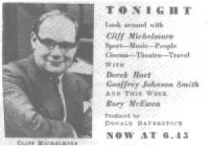 The programme would always finish with Cliff saying "That's all for tonight, the next 'Tonight' will be tomorrow night. Until then, goodnight".
